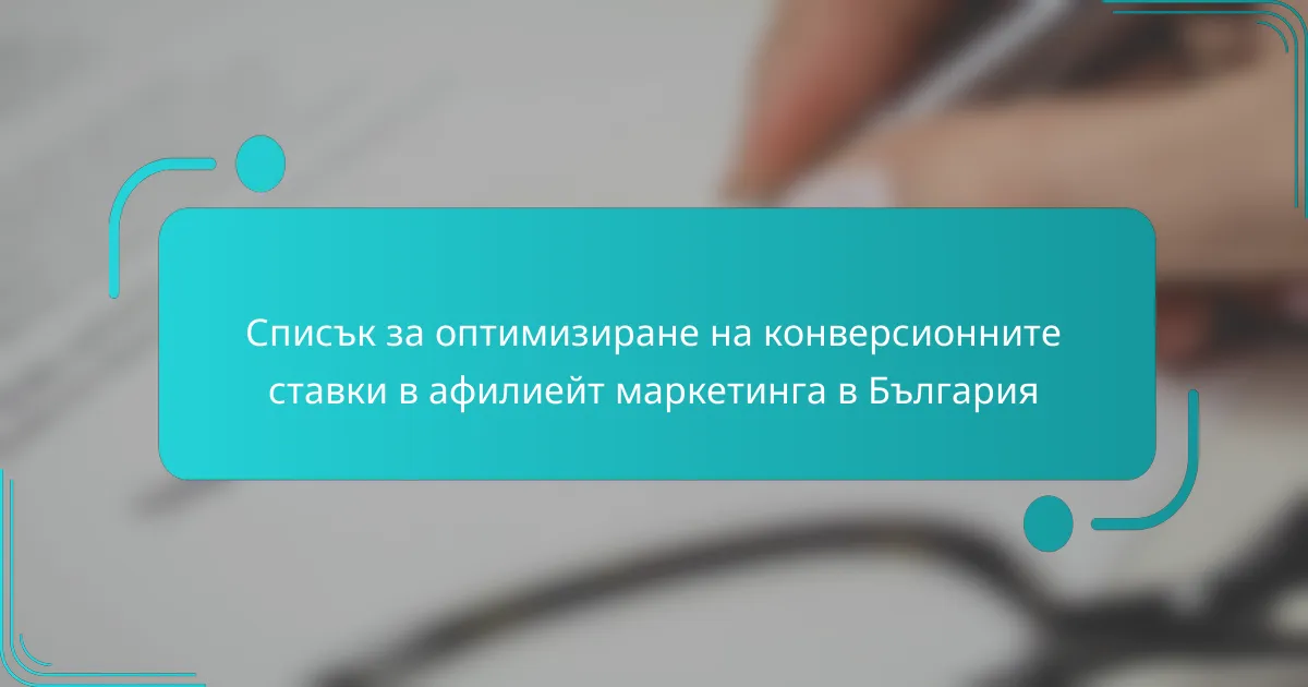 Оптимизацията на конверсионните проценти в аффилиейт маркетинга в България изисква стратегически подход, който включва усъвършенстване на целевите страници, прилагане на A/B тестове и подобряване на видимостта на призивите за действие. Чрез разбиране на местното потребителско поведение и използване на инструменти, които проследяват метрики за представяне, аффилиейтите могат значително да увеличат ангажираността на потребителите и да стимулират продажбите. Фокусирайки се върху нишови пазари и изграждайки доверие чрез социални медии, тези усилия могат да бъдат допълнително засилени.