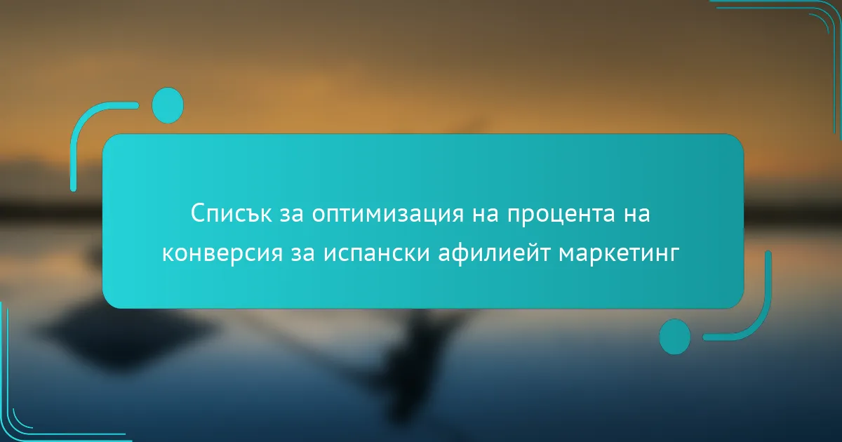 Ефективната оптимизация на процента на конверсия в испанския аффилиейт маркетинг изисква дълбоко разбиране на местната аудитория и техните уникални предпочитания. Чрез фокусиране върху персонализирано съдържание, стратегически методи за тестване и локално SEO, маркетолозите могат значително да увеличат ангажираността на потребителите и да стимулират конверсиите. Всеобхватен контролен списък може да помогне да се уверите, че дизайнът на уебсайта, функционалността и производителността са оптимизирани, за да се създаде безпроблемно потребителско изживяване.